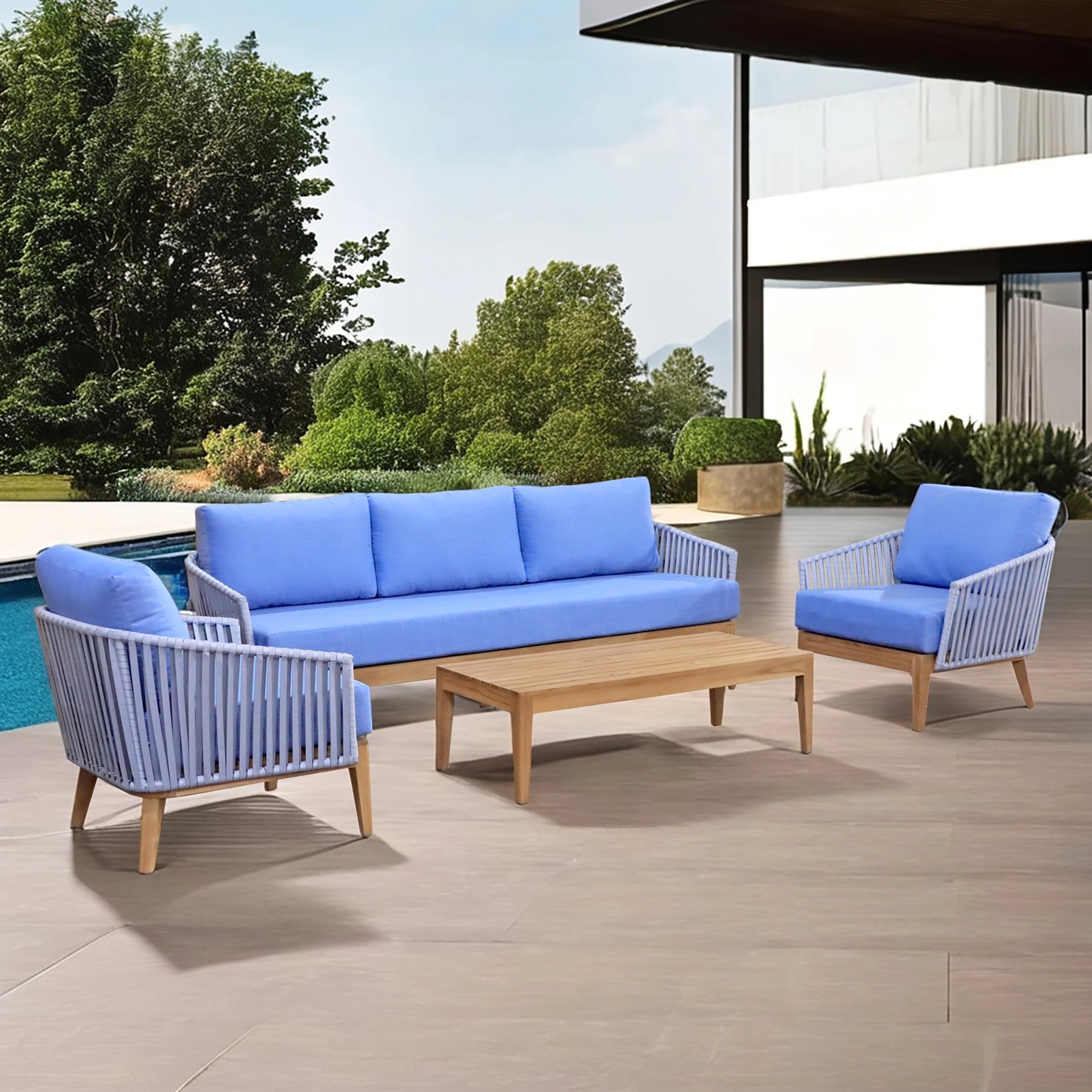 For a modern look, combine clean lines with natural wood textures. Wooden sofas for living rooms adapted for outdoor spaces can bring an indoor-level of comfort to patios, while Durable wooden sofas with armrests offer ergonomic support and relaxation.
