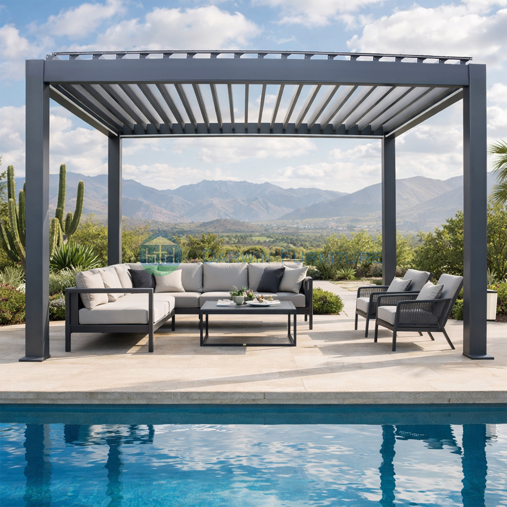 In addition, the pergola’s canopy can be freely customized: if you prefer an open, airy feel, keep the open lattice roof and pair it with climbing plants to create natural shade; if you need shelter from rain and sun, you can install a metal roof, a retractable canopy, or a shade sail, switching between “open” and “closed” modes with a single click to adapt to different weather conditions. This adaptable and adjustable nature allows it to evolve alongside your family’s changing needs, avoiding the limitations of a “one-time installation, fixed for life” solution.